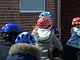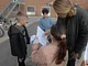 Vagtskiftet ved Marselisborg Slot skærtorsdag kl. 12 tiltrak mange fremmødte, mens politiets indsatsleder undervejs tog sig tid til at besvare spørgsmål fra en nysgerrig dreng.