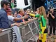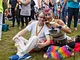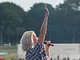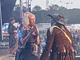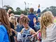 Vagtskiftet ved Marselisborg Slot skærtorsdag kl. 12 tiltrak mange fremmødte, mens politiets indsatsleder undervejs tog sig tid til at besvare spørgsmål fra en nysgerrig dreng.