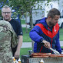 Vagtskiftet ved Marselisborg Slot skærtorsdag kl. 12 tiltrak mange fremmødte, mens politiets indsatsleder undervejs tog sig tid til at besvare spørgsmål fra en nysgerrig dreng.