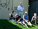 Vagtskiftet ved Marselisborg Slot skærtorsdag kl. 12 tiltrak mange fremmødte, mens politiets indsatsleder undervejs tog sig tid til at besvare spørgsmål fra en nysgerrig dreng.