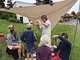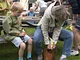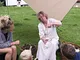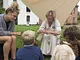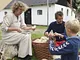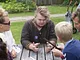 Vagtskiftet ved Marselisborg Slot skærtorsdag kl. 12 tiltrak mange fremmødte, mens politiets indsatsleder undervejs tog sig tid til at besvare spørgsmål fra en nysgerrig dreng.
