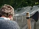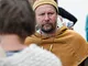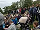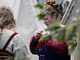 Vagtskiftet ved Marselisborg Slot skærtorsdag kl. 12 tiltrak mange fremmødte, mens politiets indsatsleder undervejs tog sig tid til at besvare spørgsmål fra en nysgerrig dreng.