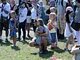 Vagtskiftet ved Marselisborg Slot skærtorsdag kl. 12 tiltrak mange fremmødte, mens politiets indsatsleder undervejs tog sig tid til at besvare spørgsmål fra en nysgerrig dreng.