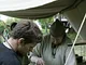 Vagtskiftet ved Marselisborg Slot skærtorsdag kl. 12 tiltrak mange fremmødte, mens politiets indsatsleder undervejs tog sig tid til at besvare spørgsmål fra en nysgerrig dreng.
