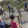 Vagtskiftet ved Marselisborg Slot skærtorsdag kl. 12 tiltrak mange fremmødte, mens politiets indsatsleder undervejs tog sig tid til at besvare spørgsmål fra en nysgerrig dreng.