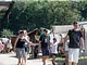 Vagtskiftet ved Marselisborg Slot skærtorsdag kl. 12 tiltrak mange fremmødte, mens politiets indsatsleder undervejs tog sig tid til at besvare spørgsmål fra en nysgerrig dreng.