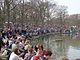 Vagtskiftet ved Marselisborg Slot skærtorsdag kl. 12 tiltrak mange fremmødte, mens politiets indsatsleder undervejs tog sig tid til at besvare spørgsmål fra en nysgerrig dreng.