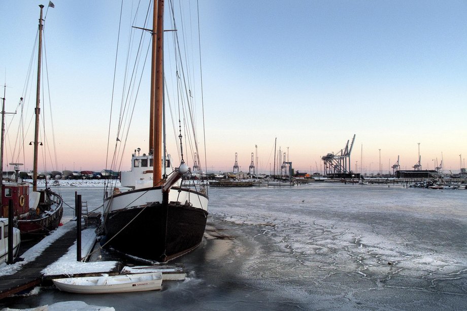 En isfyldt tur langs vandet, fra Dokk1 til Bellevue, og forbi den frost ramte badeanstalt.