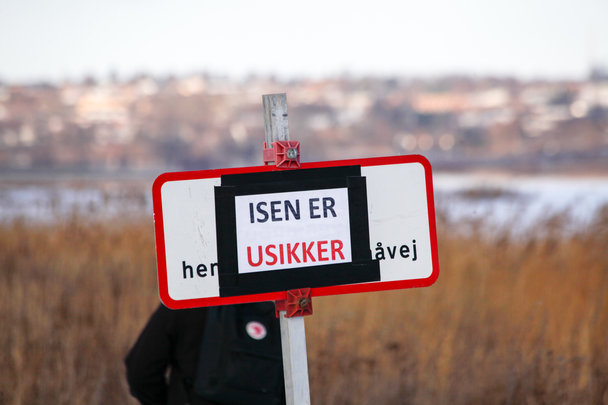 Engsøen er et velbesøgt sted i Århus, mens søen fryser til og sneen dækker området med et fint hvidt pulver. Masser af lys og frisk luft og folk, der nyder det.