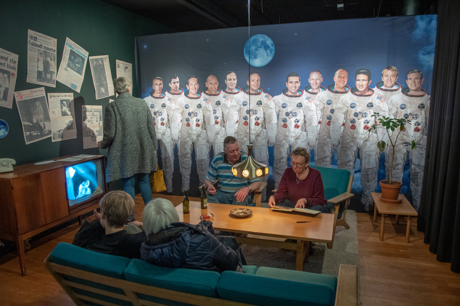 Man kan trække i rumdragten og tage en selfie i den specialbyggede StenoKapsel.