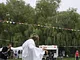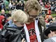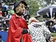 Vagtskiftet ved Marselisborg Slot skærtorsdag kl. 12 tiltrak mange fremmødte, mens politiets indsatsleder undervejs tog sig tid til at besvare spørgsmål fra en nysgerrig dreng.