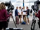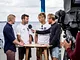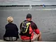 Vagtskiftet ved Marselisborg Slot skærtorsdag kl. 12 tiltrak mange fremmødte, mens politiets indsatsleder undervejs tog sig tid til at besvare spørgsmål fra en nysgerrig dreng.