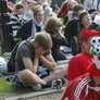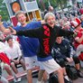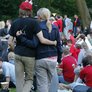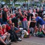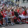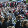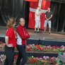 Vagtskiftet ved Marselisborg Slot skærtorsdag kl. 12 tiltrak mange fremmødte, mens politiets indsatsleder undervejs tog sig tid til at besvare spørgsmål fra en nysgerrig dreng.