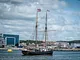 Vagtskiftet ved Marselisborg Slot skærtorsdag kl. 12 tiltrak mange fremmødte, mens politiets indsatsleder undervejs tog sig tid til at besvare spørgsmål fra en nysgerrig dreng.