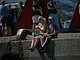 Vagtskiftet ved Marselisborg Slot skærtorsdag kl. 12 tiltrak mange fremmødte, mens politiets indsatsleder undervejs tog sig tid til at besvare spørgsmål fra en nysgerrig dreng.