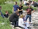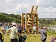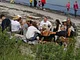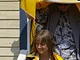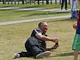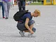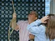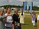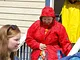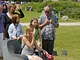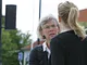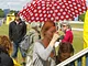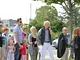 Vagtskiftet ved Marselisborg Slot skærtorsdag kl. 12 tiltrak mange fremmødte, mens politiets indsatsleder undervejs tog sig tid til at besvare spørgsmål fra en nysgerrig dreng.