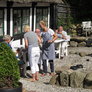 Vagtskiftet ved Marselisborg Slot skærtorsdag kl. 12 tiltrak mange fremmødte, mens politiets indsatsleder undervejs tog sig tid til at besvare spørgsmål fra en nysgerrig dreng.