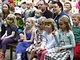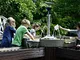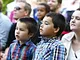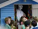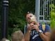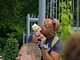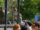 Vagtskiftet ved Marselisborg Slot skærtorsdag kl. 12 tiltrak mange fremmødte, mens politiets indsatsleder undervejs tog sig tid til at besvare spørgsmål fra en nysgerrig dreng.