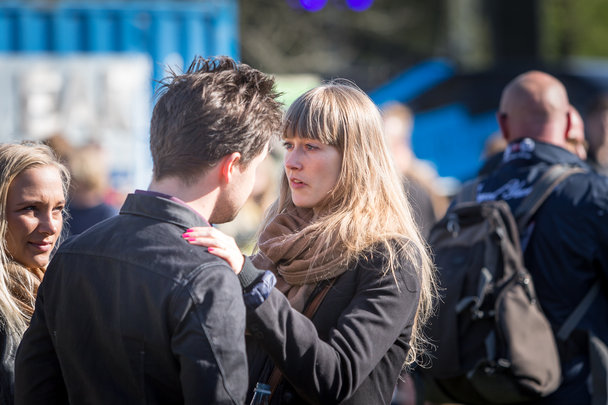 Schweiziske 'We Invented Paris' havde det lidt svært på Spotfestival 2014. Måske var det koncerttidspunktet, der drillede, men rundt omkring i parken foran Musikhuset levedes det glade festival-liv.