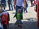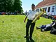 Vagtskiftet ved Marselisborg Slot skærtorsdag kl. 12 tiltrak mange fremmødte, mens politiets indsatsleder undervejs tog sig tid til at besvare spørgsmål fra en nysgerrig dreng.