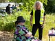 Vagtskiftet ved Marselisborg Slot skærtorsdag kl. 12 tiltrak mange fremmødte, mens politiets indsatsleder undervejs tog sig tid til at besvare spørgsmål fra en nysgerrig dreng.