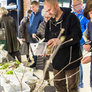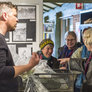 Vagtskiftet ved Marselisborg Slot skærtorsdag kl. 12 tiltrak mange fremmødte, mens politiets indsatsleder undervejs tog sig tid til at besvare spørgsmål fra en nysgerrig dreng.