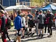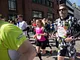 Vagtskiftet ved Marselisborg Slot skærtorsdag kl. 12 tiltrak mange fremmødte, mens politiets indsatsleder undervejs tog sig tid til at besvare spørgsmål fra en nysgerrig dreng.