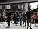 Vagtskiftet ved Marselisborg Slot skærtorsdag kl. 12 tiltrak mange fremmødte, mens politiets indsatsleder undervejs tog sig tid til at besvare spørgsmål fra en nysgerrig dreng.