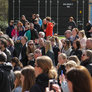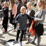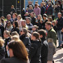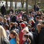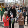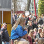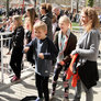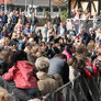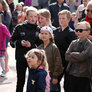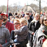 Vagtskiftet ved Marselisborg Slot skærtorsdag kl. 12 tiltrak mange fremmødte, mens politiets indsatsleder undervejs tog sig tid til at besvare spørgsmål fra en nysgerrig dreng.