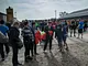 Vagtskiftet ved Marselisborg Slot skærtorsdag kl. 12 tiltrak mange fremmødte, mens politiets indsatsleder undervejs tog sig tid til at besvare spørgsmål fra en nysgerrig dreng.