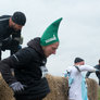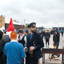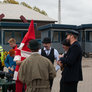 Vagtskiftet ved Marselisborg Slot skærtorsdag kl. 12 tiltrak mange fremmødte, mens politiets indsatsleder undervejs tog sig tid til at besvare spørgsmål fra en nysgerrig dreng.