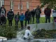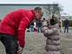 Vagtskiftet ved Marselisborg Slot skærtorsdag kl. 12 tiltrak mange fremmødte, mens politiets indsatsleder undervejs tog sig tid til at besvare spørgsmål fra en nysgerrig dreng.