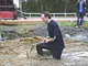 Vagtskiftet ved Marselisborg Slot skærtorsdag kl. 12 tiltrak mange fremmødte, mens politiets indsatsleder undervejs tog sig tid til at besvare spørgsmål fra en nysgerrig dreng.