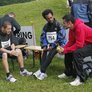 Vagtskiftet ved Marselisborg Slot skærtorsdag kl. 12 tiltrak mange fremmødte, mens politiets indsatsleder undervejs tog sig tid til at besvare spørgsmål fra en nysgerrig dreng.