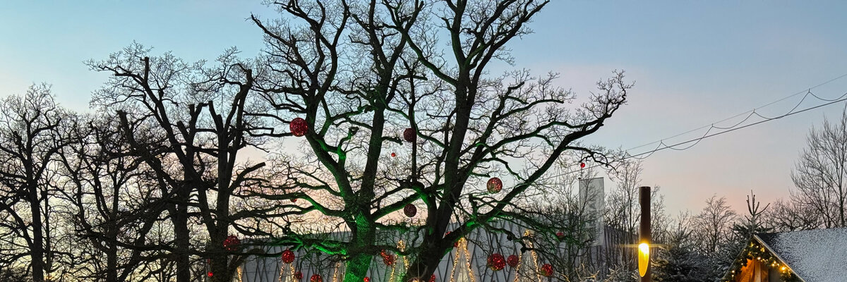 Kom til magisk Jul i Friheden i Aarhus, hvor hele parken bliver forvandlet til et eventyrligt juleland med glitrende julelys, julekugler og sne overalt.