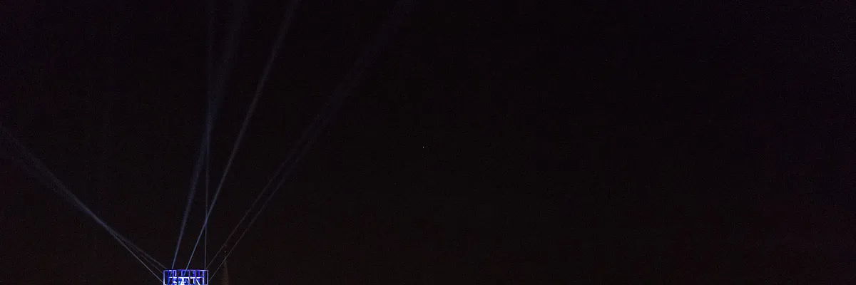 Officiel åbning af Aarhus som Europæisk Kulturhovedstad 2017. Optog og lysshow set fra Hotel Atlantic mod Mindet.