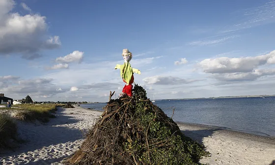 Det var en dejlig aften på stranden ved Fedet. Der var godt gang i bålene. Heksen ja hun døde af røgforgiftning. Og så kom Dannebrog forbi ude på vandet.